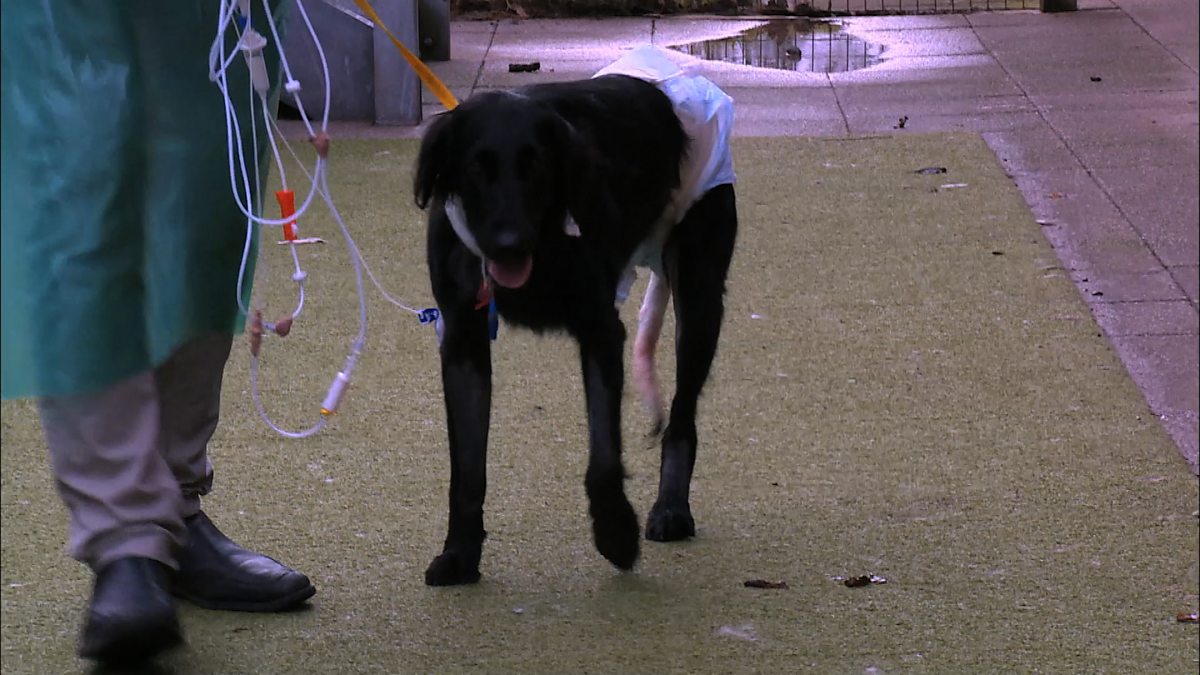 Student Charlie treats retriever Polly, who's struggling to recover from an amputation.