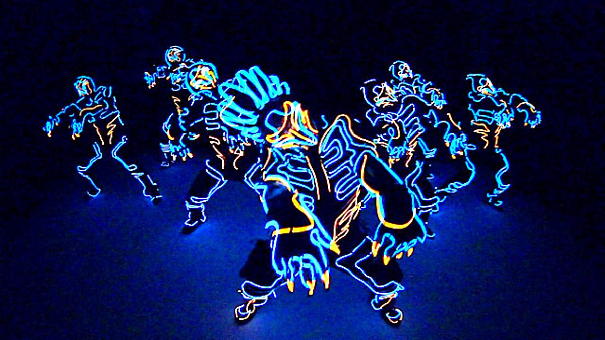 The dancers have nearly 30 metres of electroluminescent wire wrapped around their costumes to ensure a very bright performance.