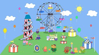 Mae Peppa a'i theulu yn mynd am daith gyffrous i'r ffair. Mae Mami Mochyn yn ceisio enn...