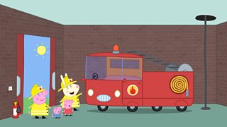 Mae Mami Mochyn yn mynd i ymarfer injan dân y mamau tra bod Dadi Mochyn yn cael barbeci...