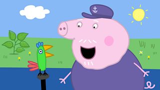 Mae Peppa a George wrth eu boddau pan ddaw Poli, parot Nain a Taid i aros. Peppa and Ge...