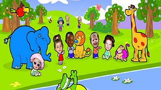 Daw Banjo a'r plentyn bach o hyd i rywbeth rhyfedd yn y parc. Banjo the monkey and the ...