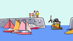 Rhaglen animeiddiedig am gwch bach a'i ffrindiau. Colourful animation about a tug boat and his friends.