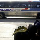 (Photo: An empty Greyhound bus pulls into the Greyhound Bus Terminal, Detroit. Credit: Jeff KowalskyAFP/Getty Images)