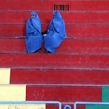 (Photo: Afghan women sit in the rafters as they watch girls compete in a Taekwon-Do match. Credit: Aref Karimi/AFP/Getty Images)