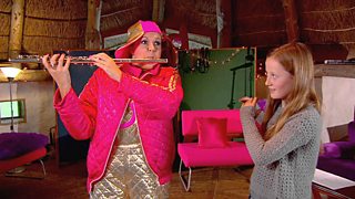 Mae Dona yn cwrdd ag offerynnwyr ifanc sy'n chwarae'r ffliwt a'r obo. Dona meets two yo...