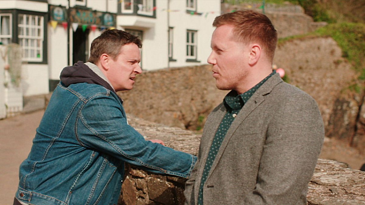 Mae Siôn yn synnu wrth ddod o hyd i'w gariad Will ar ochr carton llaeth Tretarw yn chwilio am wraig. Siôn is surprised to see his lover Will on the side of a milk carton, looking for a wife.