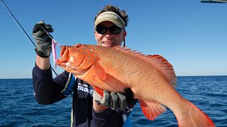 Bydd Julian Lewis Jones a Rhys Llywelyn yn pysgota am y siarc Mako yn Tasmania ac yn te...