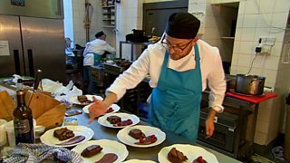 Y dasg heddiw fydd ail-greu bwydlenni tri chwrs i safon ty bwyta seren Michelin. Today'...