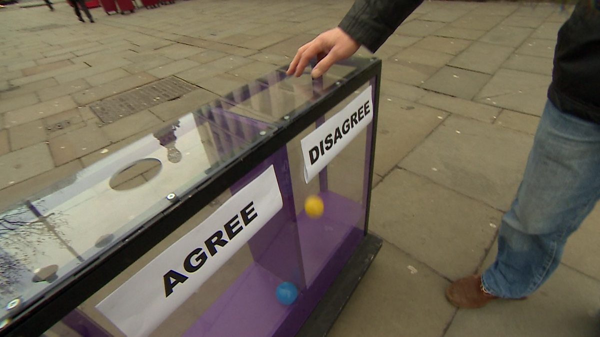 The mood box is an unscientific test with a box and balls to see what the public think about an issue.