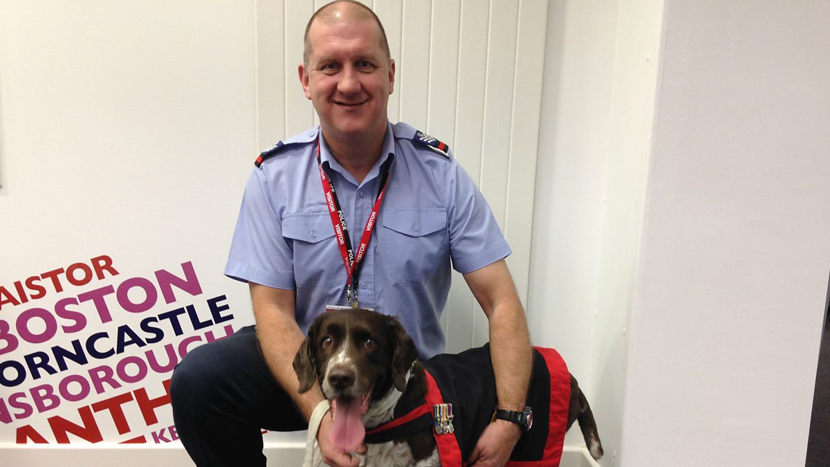 Melvyn Prior meets Buster, the RAF search dog and his owner Will Barrow.