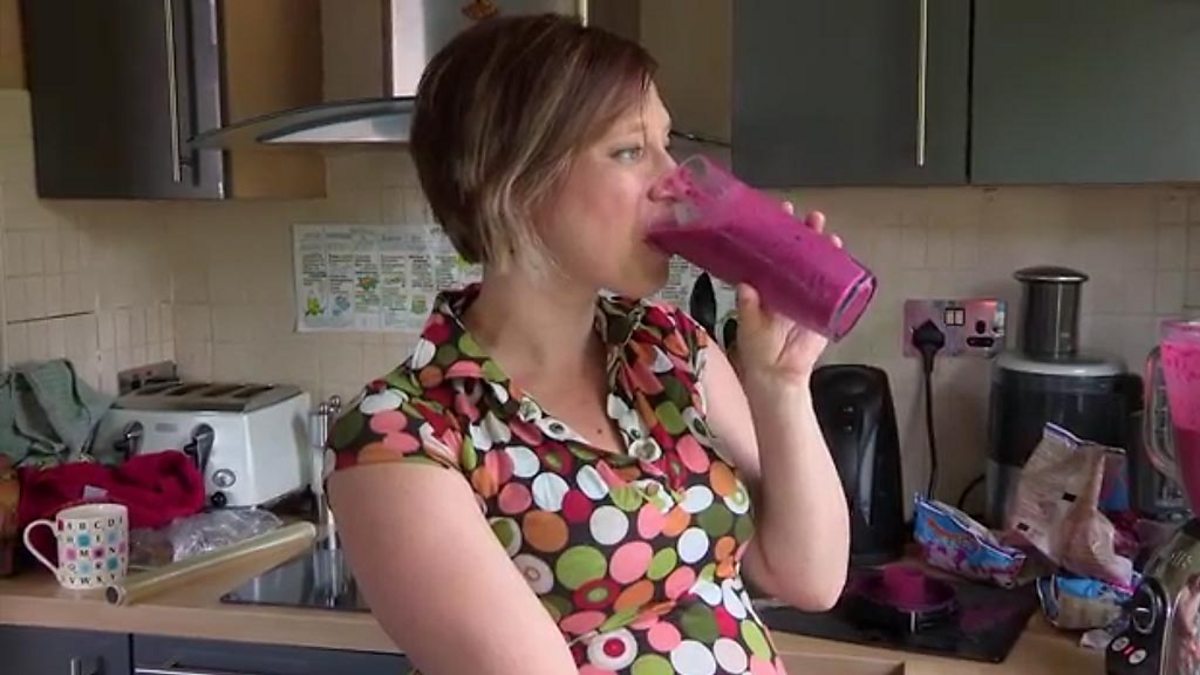 Kati whizzes up a delicious smoothie, featuring mixed berries, sour cherries and a conservative portion of placenta.