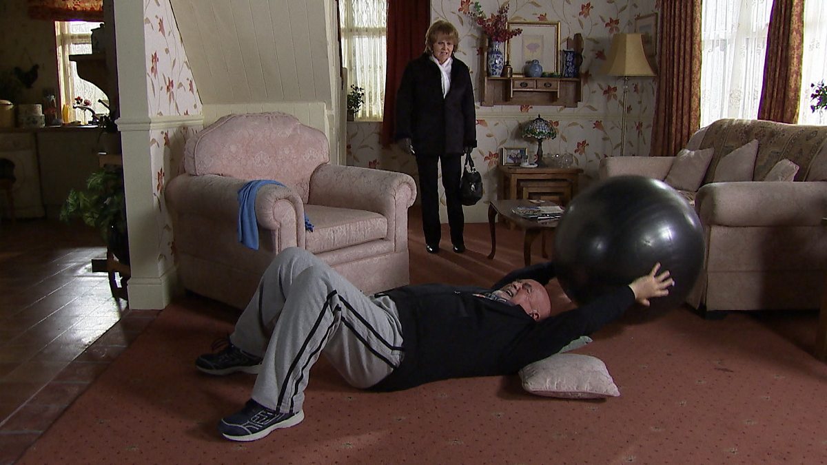 Mae Dai yn benderfynol o golli mwy o bwysau na DJ. Ydy Wiliam yn cuddio cyfrinach fawr oddi wrth Iolo? Dai is determined to lose more weight than DJ. Is Wiliam hiding a big secret from Iolo?