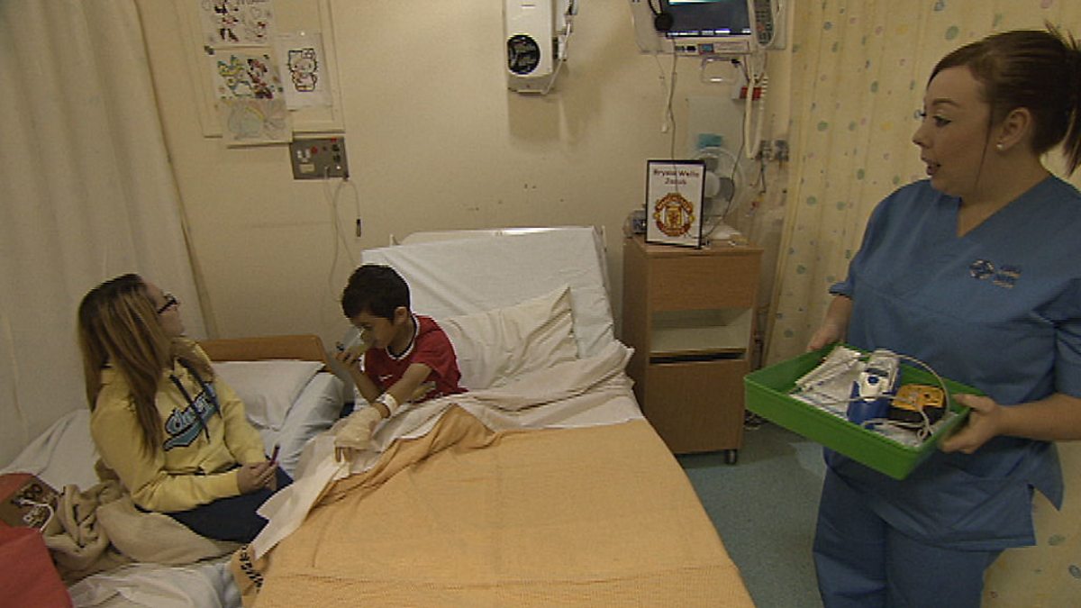 Wrth i ni ymuno â'r staff a'r teuluoedd ar Ward Plant heno, mae hogyn bach o Nefyn yn cael ei ruthro i'r ysbyty gydag anawsterau anadlu. A young boy is rushed in with breathing difficulties.