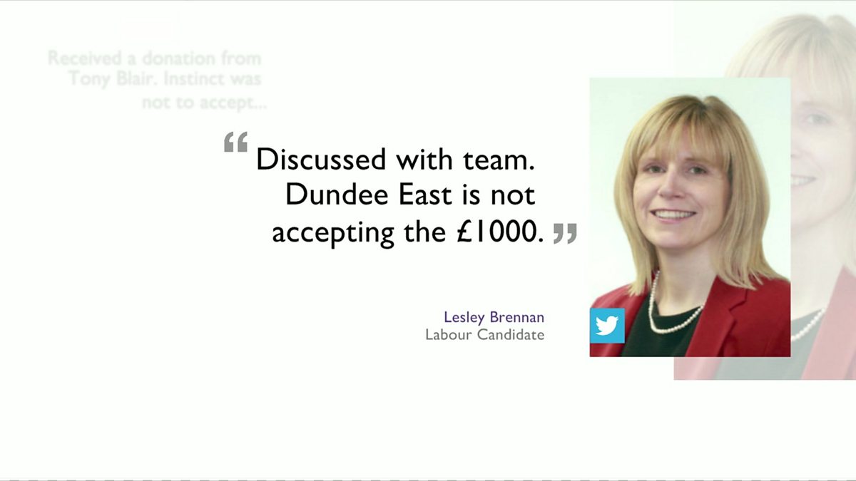 Labour's candidate for Dundee East has turned down a £1,000 donation from Tony Blair.