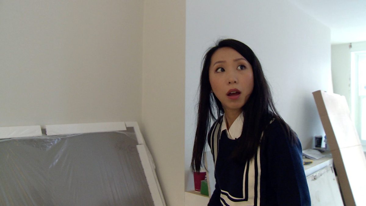 Shan Shan Wong-Kruse visits site to check on her fireplace, but can't believe that her new fireplace won't all be constructed in stone.