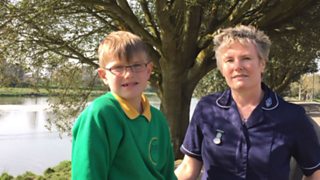 Tina and her son Joe talk about childcare issues, particularly during school holidays.