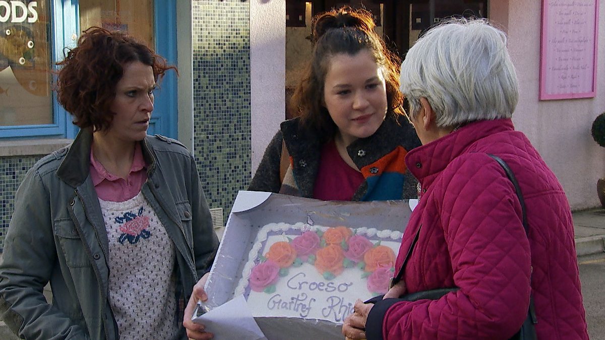 Mae Gemma yn mynd i drafferth i groesawu Rhian Haf nôl gartre' - ond beth sy'n poeni Megan? Gemma goes out of her way to welcome Rhian Haf home - but what's on Megan's mind?