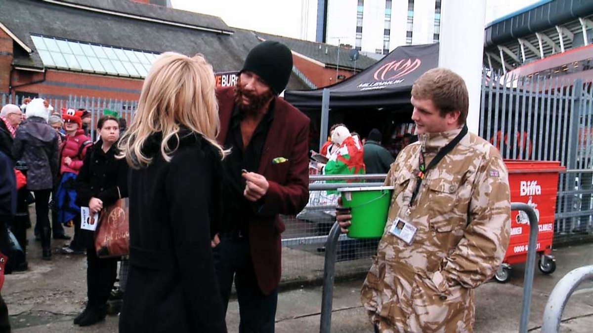 The Hoff disguises himself as he attends the rugby in Cardiff with his Welsh girlfriend Hayley Roberts.
