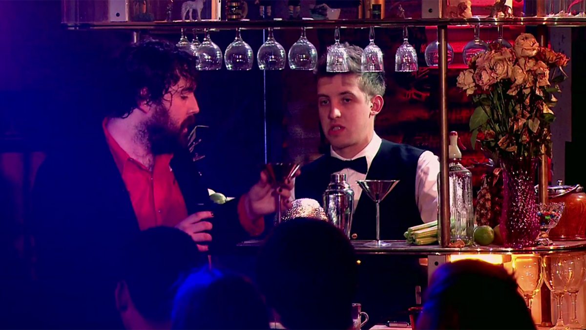 Nick talks to his Barman Mark who has a special 'Hell' themed drink for him.