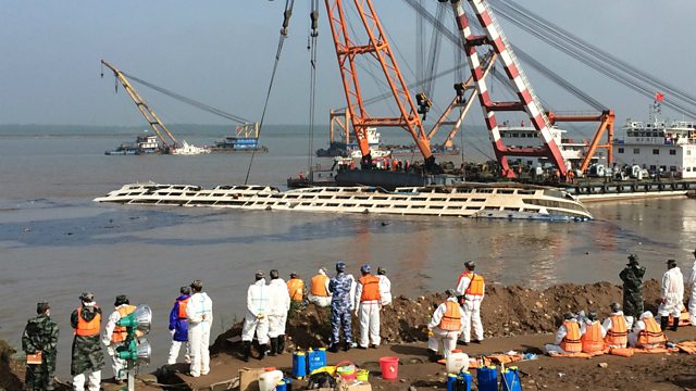 Chinese salvagers have been righting the ship which capsized on the Yangtze River. Hundreds of people are thought to have died as Chinese authorities say the chances of finding anyone still alive were "slim".