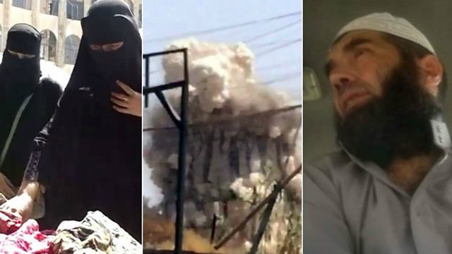 (Photo: Women wearing burkhas, bombings and a local man. BBC copyright)