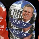 (Photo: Campaign badges for Republican US presidential candidate and former Florida governor Jeb Bush. Credit: Carlo Allegri/Reuters)