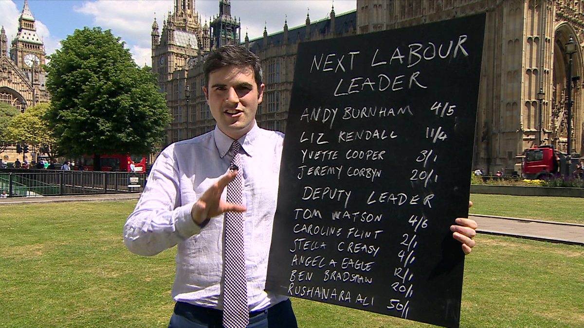 Alex Donohue from Ladbrokes tells Jo Coburn about the shortening odds for Jeremy Corbyn and Yvette Cooper in the four-horse contest to be the next party leader.