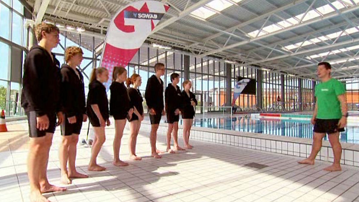 Heddiw, polo dwr yn y Pwll Nofio Cenedlaethol yng Nghaerdydd a chartio ar drac mwyaf Cymru - Glan y Gors, Cerrigydrudion. Water polo and go-karting provide a challenge for the athletes today