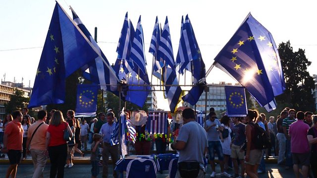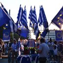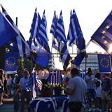 (Picture: Pro-European Union protesters wave EU flags in front of the Greek parliament / Credit:AFP)