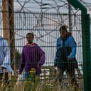 (Photo: Migrants seen through a wire fence in Calais. Credit: AFP/Getty)