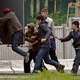 Photo: Migrants attempting to get into a truck, Calais Credit: Philippe Huguen/AFP)
