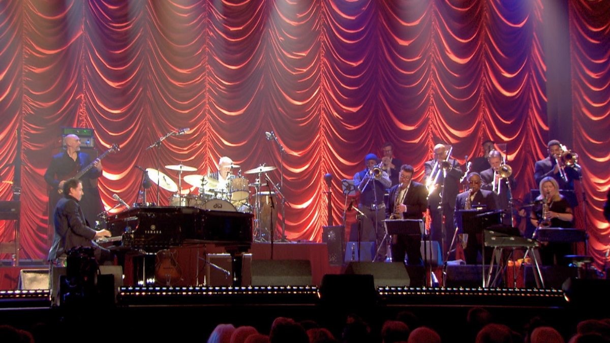 A live performance of Bumble Boogie by Jools Holland and his Rhythm & Blues Orchestra at the Empress Ballroom, Blackpool.