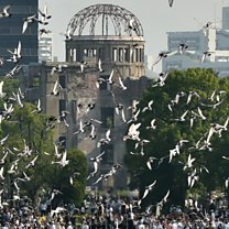 (Photo: Doves fly over the Hiroshima Peace Memorial Park during a memorial ceremony to mark the 70th anniversary of the atomic bombing of Hiroshima. Credit: AFP/Getty Images)