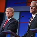 Photo: Republican presidential candidates (L-R) Wisconsin Gov. Scott Walker, Donald Trump and Jeb Bush participate in the first prime-time television presidential debate ahead of next years elections. Credit: Chip Somodevilla/Getty Images