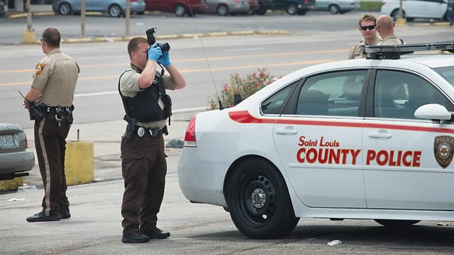 (Photo: Police collect evidence the morning after Ferguson rally shootout. Credit: Getty Images)