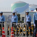 (Picture: Police officers stand in front of the Sendai nuclear power plant / Credit: AFP/Getty Images)