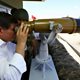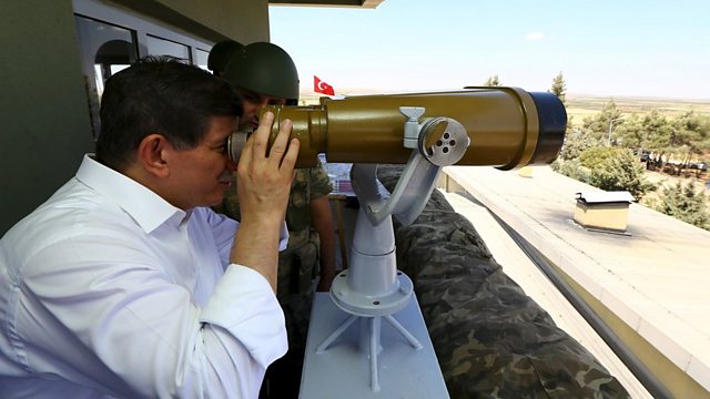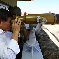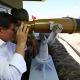 (Picture: Turkish Prime Minister Davutoglu uses binoculars to look at the Syrian side of the border. Credit: Reuters)