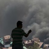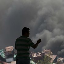 (Photo: A man looks at smoke pluming from the explosion site in Binhai new district in Tianjin, China. Credit: Damir Sagolj/Reauters)