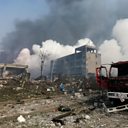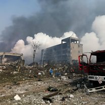 (Photo: Damaged fire truck at site of massive explosions in Tianjin, China. Credit: AFP/Getty Images)