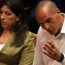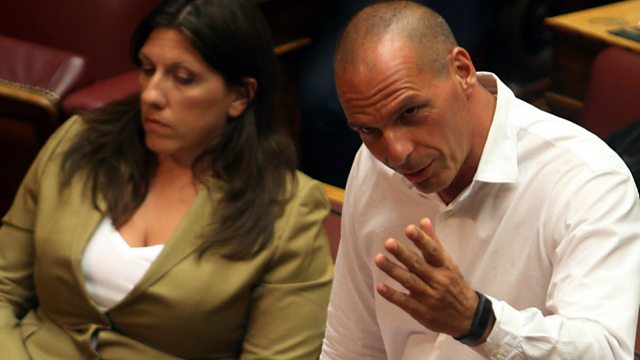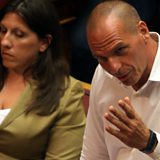 (Photo: Former Greek Finance Minister Yanis Varoufakis (R) addresses parliament in bailout debate. Credit: EPA)