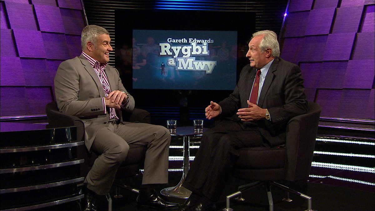 Rhodri Ogwen Williams sy'n sgwrsio gyda Gareth Edwards mewn rhaglen o 2010. Gareth Edwards joins Rhodri Ogwen Williams to talk about rugby and more in this 2010 chat show.