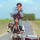 Jai dies in the arms of his best friend Veeru as the widow Radha looks on.