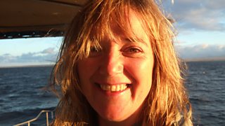 Mae Bethan yn Uganda lle mae'n gweld tsimpansïaid yn y goedwig. Bethan Gwanas is in Uga...