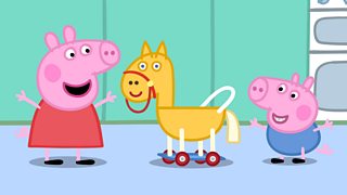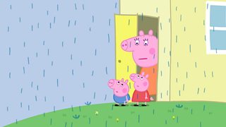 Mae Dadi'n dysgu gêm hwyliog i Peppa a George yn y ty wrth ddisgwyl i'r glaw beidio. Da...