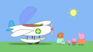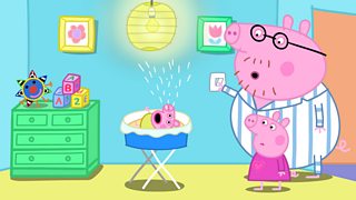 Mae Dadi Mochyn yn darllen stori amser gwely i Peppa a George. Dadi Mochyn reads Peppa ...