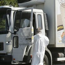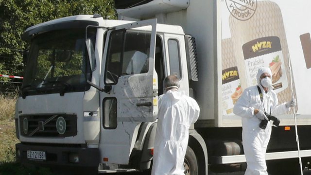 (Photo: Forensic police officers inspect migrant lorry. Credit: Reuters)
