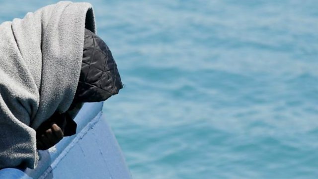(Photo: A Migrant looks out from a boat towards the Mediterranean Sea. Credit: BBC)