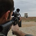 (Photo: A PKK fighter takes aim at Islamic State across no man's land in northern Iraq. Credit: Huong Ly / BBC)