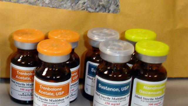 (Photo: Containers holding vials of steroids. Credit: DEA / Getty)